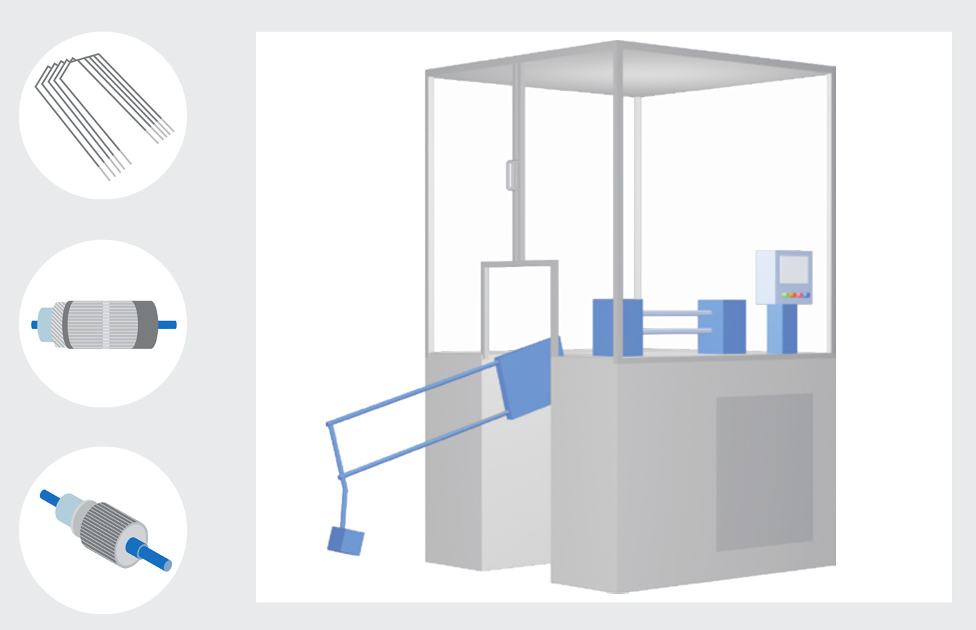 驱动电机主要由定子组件、转子组件、端盖和辅助标准件组成,而定子绕组中又包括铁芯、铜线绕组、绝缘材料等组成。而扁线电机顾名思义就是定子绕组中采用扁铜线,先把绕组做成类似发卡一样的形状,穿进定子槽内,再在另外一端把发卡的端部焊接起来。