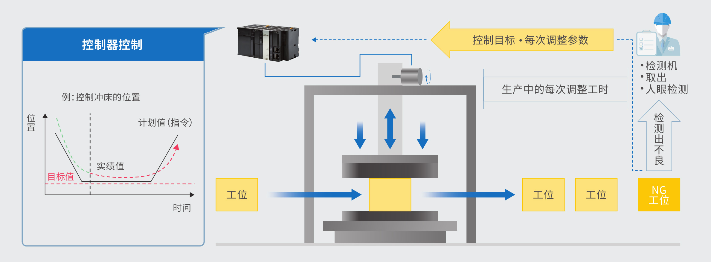 通过学习 2M(Material,Machine) 变化,将其引起的控制量行为形成一种模型,预测控制量的未来并进行修正,能够自主地降低不良。