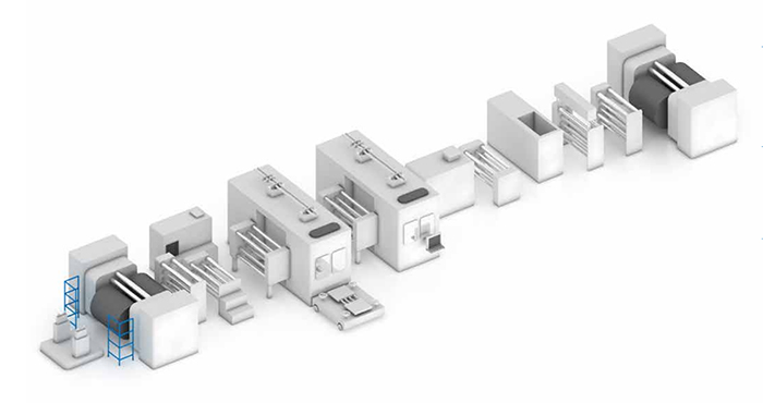 将传统的模切机 + 叠片机整合成一台设备,完成极耳模切、制片、叠片等工艺,完成电芯制作。