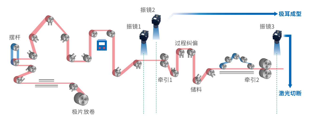 1.通过高速振镜控制完成激光切割、极耳成型、激光切断。