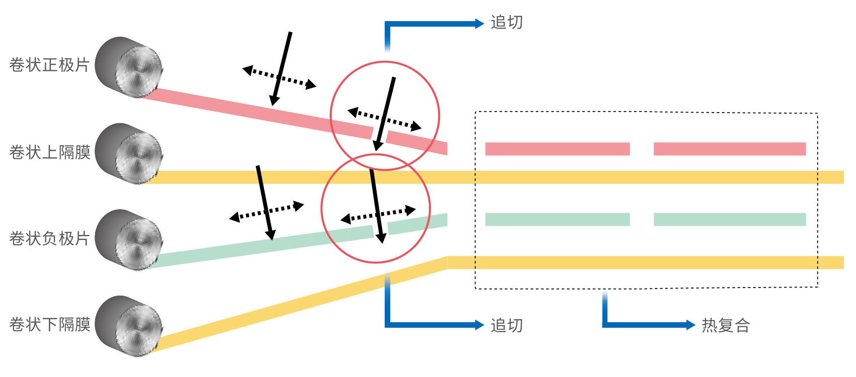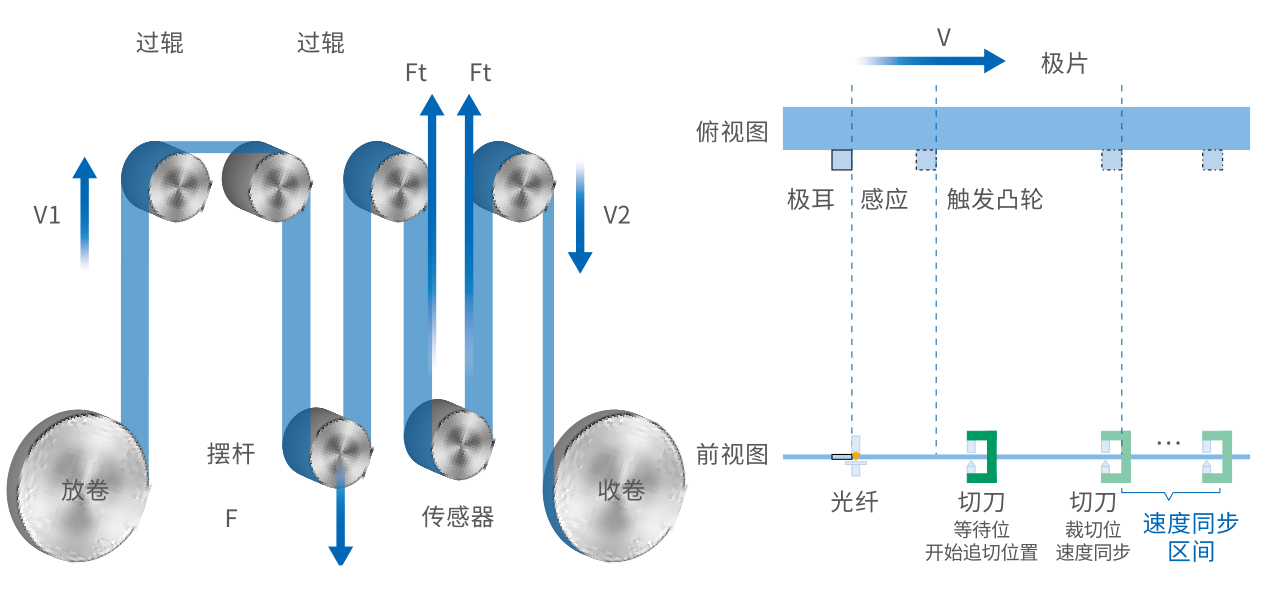 通过高速追切控制和补偿算法保证在线速度以及正负极片的对齐度。