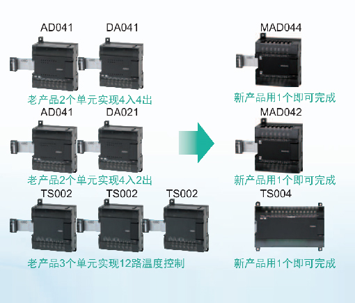 CP1W-TS003的2点为温度传感器/模拟输入兼用,使用1个单元即可构成温度传感器输入和模拟输入。可通过温度输入单元和PID指令的组合,实现温度控制。