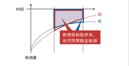 铁和铝为同等的长距离检测,因此即使在到位作业时工件晃动,也能通过有余量的检测距离来减少检测错误。