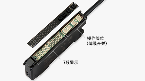 同一基板上安装7段显示和操作部位,降低构件成本。操作按钮采用“薄膜开关”,在降低成本的同时,提高按钮灵敏度。