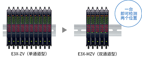 实现两台放大器功能的双通道光纤放大器,安装数量减半,显著降低采购成本。此外,有效削减配线工时与耗电量,有助于实现设备与控制柜的小型化。