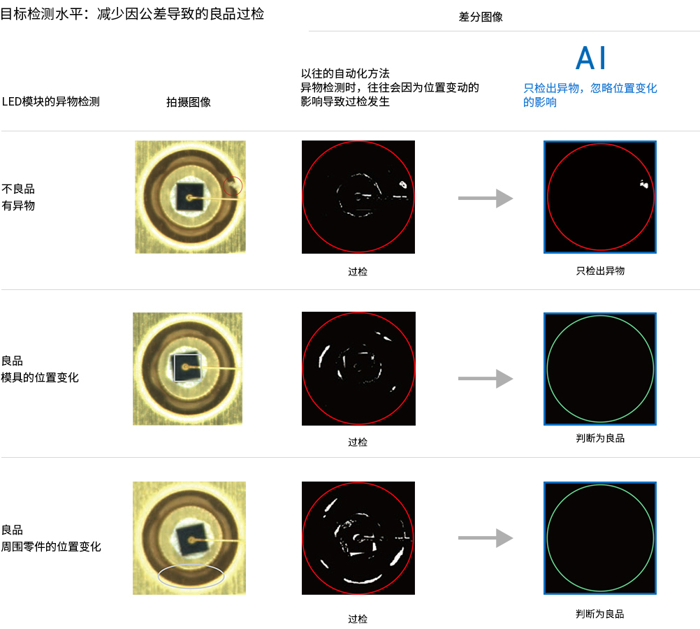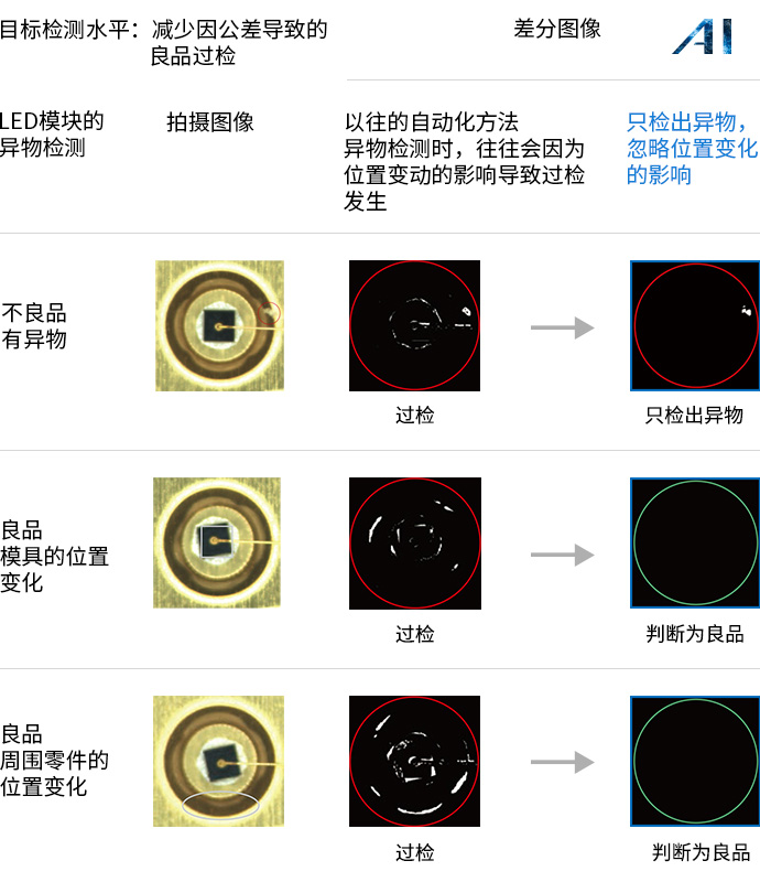 为了解决这些问题,星空(中国)一站式服务官网新开发了一种缺陷抽取AI,再现了熟练工的检测方法,并将其搭载于图像处理系统FH系列中。