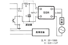 由R、C构成,抑制施加到晶闸管开关等上的急剧启动电压,防止SSR晶闸管开关误启动的电路。 |