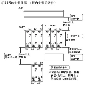 (3)在柜内2层以上安装SSR时,请测定所有层的环境温度,并以温度最高的地方为基准。