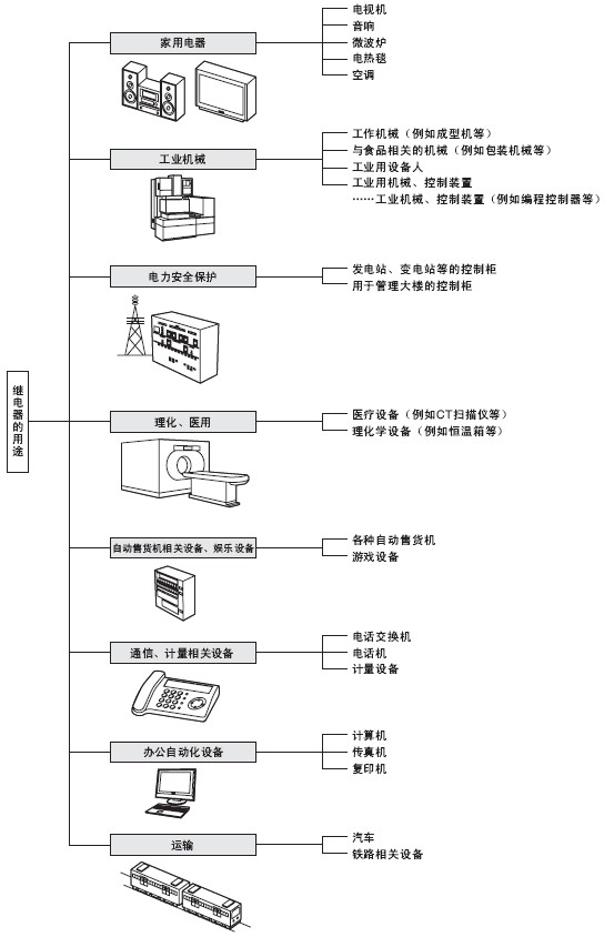 几乎在所有使用电气的机械和装置中都使用继电器。