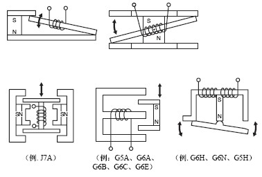 无极继电器的电磁铁构造也有很多, 下图显示其中具有代表性的示例。