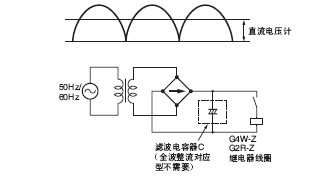 (3) 关于线圈应注意以下几点: 在DC 操作继电器中, 带动作表 示、带浪涌吸收用二极管继电器及保持继电器的情况下有极 性。极性弄错可能会导致元件损坏、动作不良, 敬请注意。 如果在AC操作继电器上外加DC电压,线圈发热,可能造成烧 损。相反如果在DC操作继电器上外加AC电压,可动铁片反复 振动, 不能正常动作。