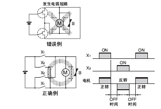 继电器线圈在非工作状态下 暴露在高温、高湿的环境 中, 而且线圈卷线和铁芯等 其他金属之间有电位差时, 如果它们之间的绝缘不充 分, 两者间流通的离子化电 流, 将可能腐蚀线圈上所卷 的铜线。 与在金属上进行电镀的作用 相同,通过酸、碱等,将可 促进该作用。 在以往的继电器中, 往往忽 视这种现象, 但是最近在卷 轴材方面开发出了特性较好 的塑料, 而且卷线的绝缘材 也开发出了聚氨酯类、聚 脂、聚酰胺、氟树脂等特性 优良的材料, 减少了一部分 危险性。要防止电气腐蚀, 应避免在高温、高湿中保管 及使用。在电路构成方面应 注意开关的位置, 使其不在 卷线上施加+电位, 需要考 虑+接地等。 右边列举了良性示例和不良 示例。