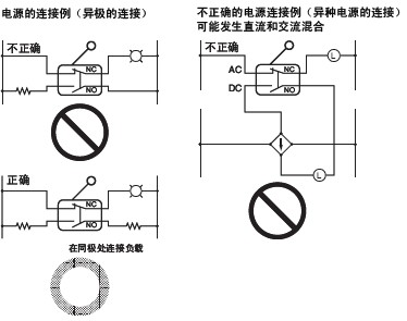 ·为了提高接触可靠性, 必须根据负载选择合适的开关。具体请参考个别说明的“微小负载型用的注意事项”。