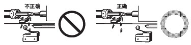 ●关于连接 ·请不要在1个开关的接点上连接异极、异种的电源。 ·在电路设计时请不要在接点间加电压。(可能导致混触熔化) ·即使在发生异常情况时, 也不要出现短路的电路。(可能导致导电部位的熔断) ·开关用于电子电路(低电压· 低电流) 1. 接点的振动、震颤会带来问题时,请采取下面的措施。 ●关于使用环境 ·请不要在有引火性气体、爆炸性气体等环境中单独使用开关。 ·限位开关也会由于在室外或特殊的切削油的关系导致开关材质变质及劣化, ·请不要在有热水(+60℃以上) 的地方和水蒸气中使用。 ·操作人员不小心将开关安装在易发生误动作或事故的地方时,请加装外罩。 ·开关受到连续的振动和冲击时,产生的磨损粉末可能导致接点接触不良和动作失常、耐久性下降等问题。 ●关于定期检查和定期更换 ·在一直按下的状态下, 如果开关频率较低(1次以下/日), 则可能会由于零件的劣化导致复位不良。 ●关于开关的保管 ·请避免在恶性气体(H2S、SO2、NHO3、Cl2等) 和有尘埃、高温多湿的环境中存放开关。 ●关于耐气候、耐寒、耐热规格 为了提高耐气候、耐寒、耐热性能, 使用了硅橡胶, 硅橡胶部分情况下可能产生硅气体(常温下可能发生, 高温下产生量会进一步增加) 。 这种气体通过电弧能量反应, 会生成二氧化硅(SiO2) 。二氧化硅(SiO2) 不断堆积在接点上, 会发生接触障碍, 可能影响设备的正常运行。 ●关于室外使用 ·在有泥水、粉尘的地方, 请使用机械部位密封的橡皮帽限位开关。 ●关于操作 ·为避免开关的驱动杆急速返回或受到冲击, 请考虑操作体(凸轮、挡块等) 进行操作。 ·在旋转运动、直线运动时也必须在开关的驱动杆上施加正常的载荷。 如下图所示, 挡块触到摆杆时, 动作位置将无法稳定。 ·请不要在开关的驱动杆上施加偏载荷, 或者引起局部磨擦。 ·如果从斜面向开关的驱动杆(滚珠) 上施加载荷, 可能会造成驱动杆和旋转轴的变形、折损, ·请设置驱动杆不超过过行程(OT)。过行程(OT)超过限制的话,可能引起故障。 ·过行程过大时, 可能会诱发早期的故障。因此在安装时必须进行调整, ·在针状按钮型中, 按钮的行程和操作体的行程必须在一条垂直线上。 ·请配合驱动杆的特性使用开关。 ·请不要对驱动杆进行加工而导致动作位置的变化。 ●挡块的设计 关于挡块的速度及角度与驱动杆的关系 <滚珠摆杆型驱动杆> (1)挡块不会越过驱动杆的情况下