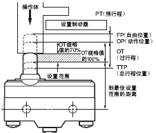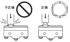 注2. 防滴型(Z-D55型)的情况下随着环境温度的下降, 橡胶靴(橡胶帽) 会有固化的倾向。因此, 如果在低温环境下常时将传动器压入使用,则会延迟复位,有时甚至不能复位。如果在这样的环境或用途下使用, 我们备有一种特殊产品, 这款产品在橡胶靴(橡胶帽) 上使用了抗寒性能优越的硅橡胶。敬请垂询。