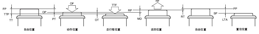 在按钮上施加外力,可动接点从自由位置开始反转时按钮的位置(角度)。