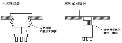 ·面板安装型按安装方法可以分成一次性安装和螺钉紧固安装两种。一次性安装是通过树脂或金属板簧的弹性来固定的结构。