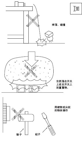 ·开关可能由于激烈的振动和冲击导致动作不良和破损。此外,开关大部分由树脂做成,