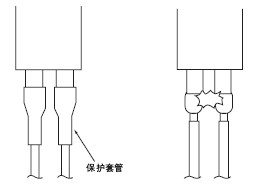 ·小型开关由于端子间隔狭窄, 会引起导线被覆部烧焦或短路。请使用保护套或热收缩套。