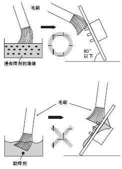·用毛刷涂助焊剂时,请使用浸透焊剂的海棉适量涂布。