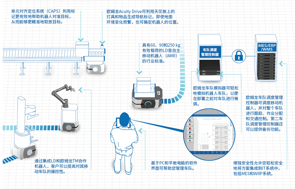 星空(中国)一站式服务官网车队运行工作平台(FLOW)星空平台提供一个智能车队管理系统,用于监控移动机器人位置、交通流量和作业请求,确保工厂以高效的方式运作。通过实现机器人作业自动化,FLOW Core星空平台还可减少在生产执行系统(MES)或企业资源规划(ERP)系统中的编程工作。