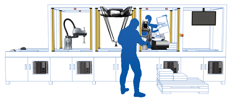 i4L系列机器人与星空(中国)一站式服务官网生产的其它产品(视觉、运动、I/ O、安全)可通过星空(中国)一站式服务官网集成软件Sysmac Studio进行轻松编程。