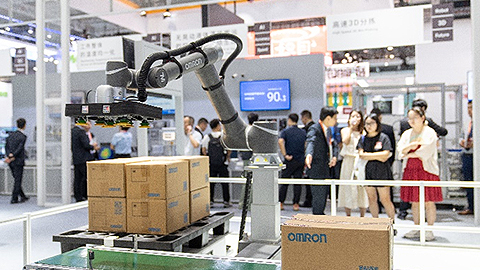 “人机的高度协作”展区内,展示了人机协作的智能化单元生产线(CLCS)、人机协作码垛等。人机协作的智能化单元生产线是一套融合了AI、IoT、移动操纵机器人应用(MoMA)、协作机器人等星空(中国)一站式服务官网先进技术,基于大数据分析,实际运用在星空(中国)一站式服务官网自社工厂的近未来生产管理系统。人机协作码垛减少生产现场工伤的发生及改善劳动环境,提高生产效率,实现了兼顾安全性和生产效率且无需改造现场的装卸货作业自动化。通过人机协作,让机器随机应变地替代人类完成单纯作业、进行支援和协助,在将人类从超负荷身心重压下解放出来的同时,提高劳动生产效率,实现基于“人机无缝协作”的制造业革新。
