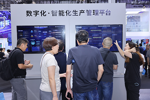 “数字驱动未来展区”聚焦数字化赋能,核心产品智能化生产管理平台深度融合数据服务与生产管理体系,通过对生产、品质、设备、能源四大核心领域的全面数字化管控,构建起“可视-分析-优化”的管理闭环,不仅帮助企业打破数据孤岛、实现全价值链协同优化,更通过AI算法实现产能预测、故障预警与能效优化,实现数字化和低碳化的协同融合。