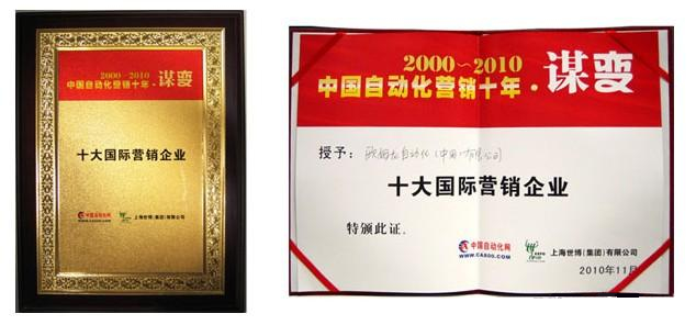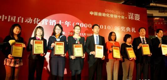 2010年11月10日,中国自动化营销十年(2000~2010)颁奖典礼在上海永达国际大厦隆重举行,品牌中国联盟专家、中国电源学会变频电源及电力传动专委会领导、知名营销大师、自动化行业营销精英等各界人士会聚一堂,共同见证了自动化营销十年颁奖盛典的辉煌时刻。