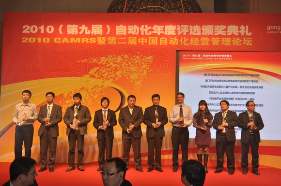 2010(第九届)自动化年度评选样板工程奖 左起第四个领奖人 雷松先生