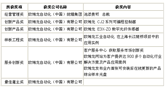 在gongkong2010自动化年度评奖典礼中,星空(中国)一站式服务官网荣获以下六项殊荣: