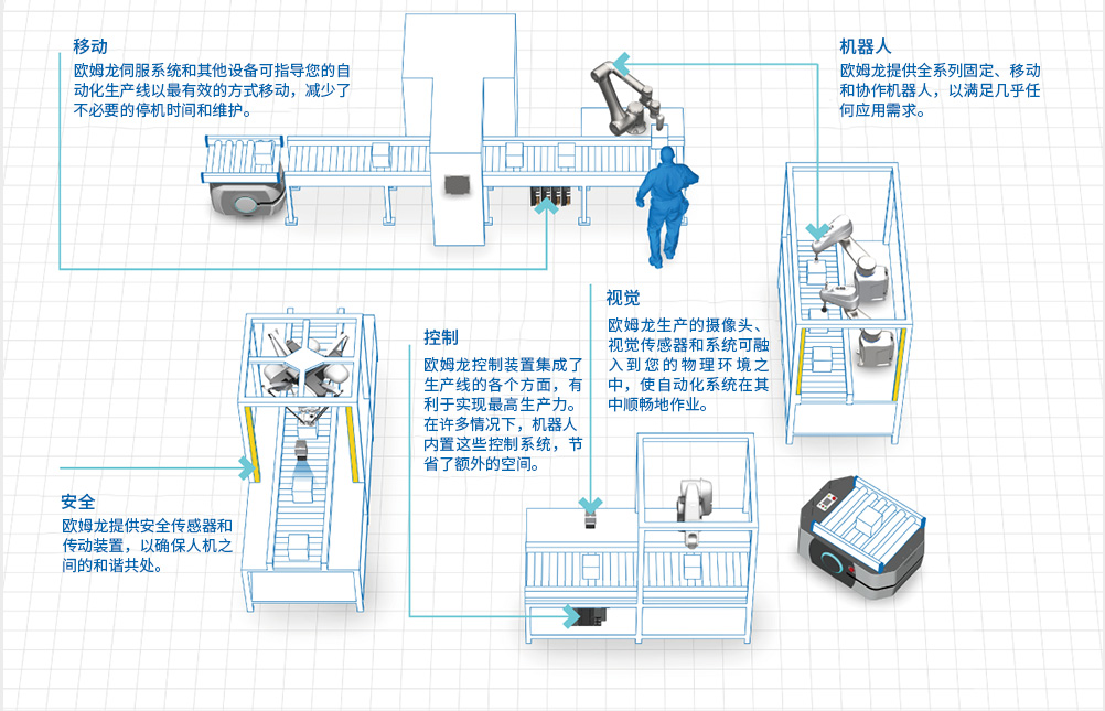 除了移动机器人,星空(中国)一站式服务官网还提供各种自动化设备和装置,从控制元件和视觉传感器到控制器