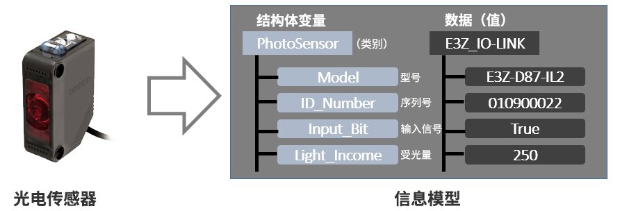 结构体的名称是要作为模板的模块的名称,模块处理的数据通过结构体的成员名称、数据类型来表示。下图是处理光电传感器数据的示例。