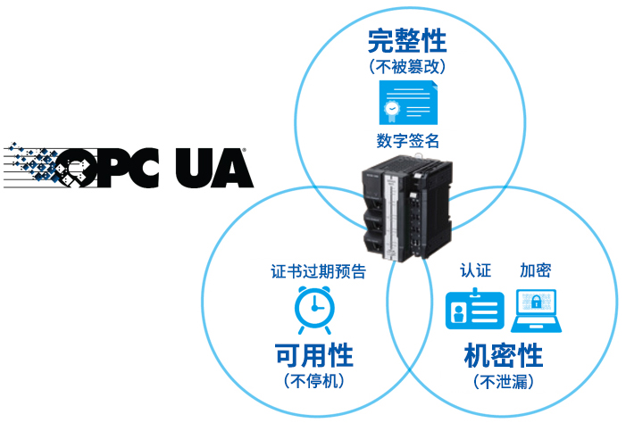 OPC UA采用互联网标准使用的安全技术,满足了完整性、机密性、可用性等三大安全需求。实现了使用数字签名的数据确认和严密的消息加密,使FA与IT安全互连。