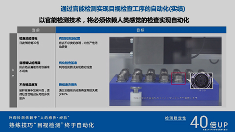 星空(中国)一站式服务官网AI感官检查,实现了将熟练工直觉和经验判断的隐性知识,通过AI导入到检测系统中,使原本依赖于人眼的产品外观检测彻底地自动化,检测效率与稳定性提升40倍。应对工厂熟练工匮乏,视觉检查自动化等课题。