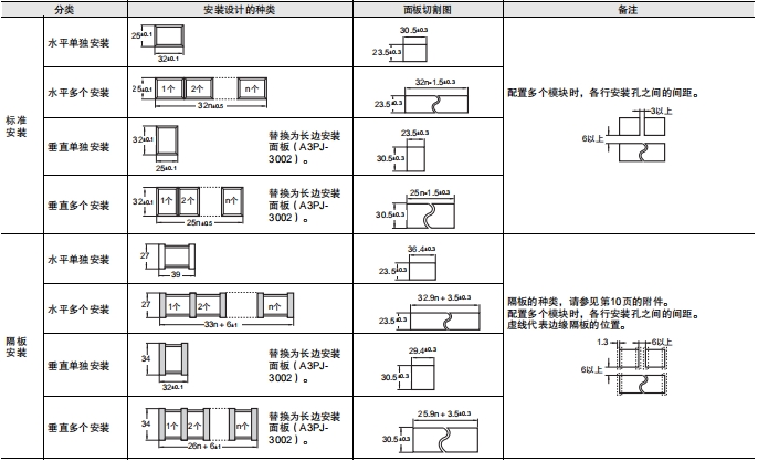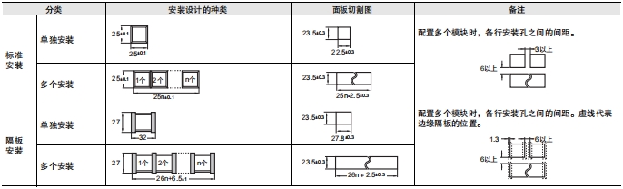 注1. n为开关的安装数量。