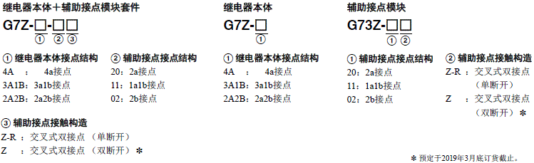 | 2A2B | 2a | G7Z-2A2B-20Z-R | DC12、24V | G7Z-2A2B-20Z | DC12、24V | |