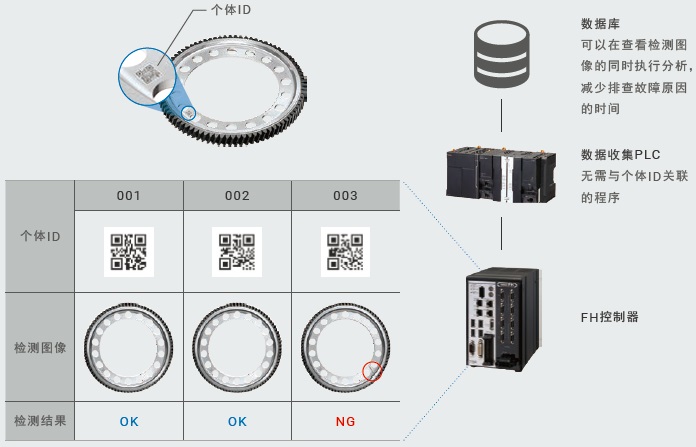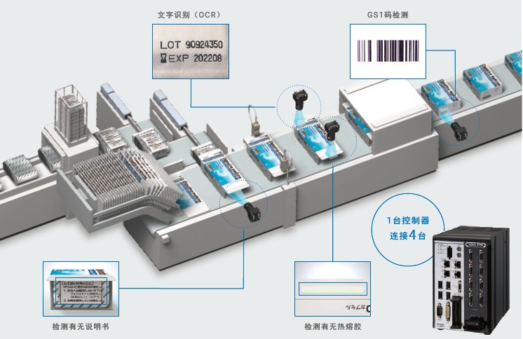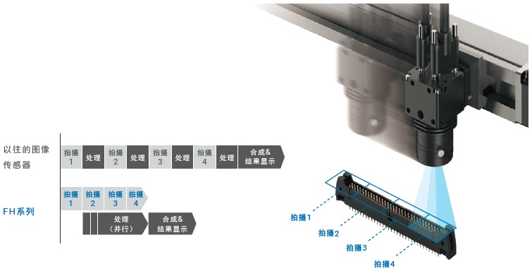 只需1台图像传感器的控制器,即可在不同的时间检测不同的位置,因此可以将每个工序中安装的控制器集成起来,降低引进成本并节省安装空间。