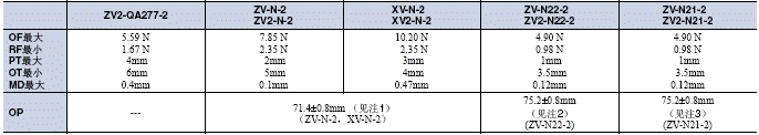 注1. ZV2-N-2和XV2-N-2的OP为31.9 ±0.8mm。