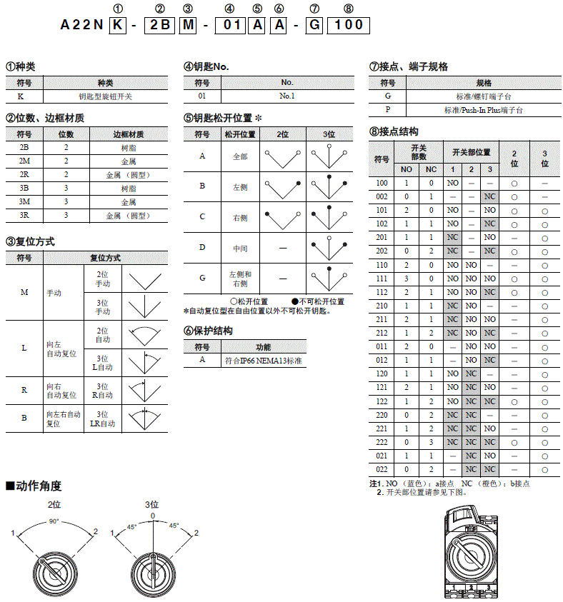 | 2 | 手动 | A22NZ-2BM-01①A | A22NZ-2MM-01①A | A22NZ-2RM-01①A | A:所有位置