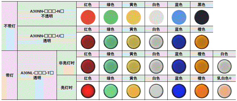 | 不带灯 | 不透明 | 红色 | A30NZ-MGM-NRA | A30NZ-MGA-NRA | A30NZ-MMM-NRA | A30NZ-MMA-NRA |