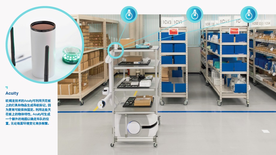 安全智能导航在速度和精度上均有较佳优势。通过使用多个系统,机器人在安装后变得更有效率。我们车队中的每台机器人都可充当传感器,用于绘制具有挑战性的环境地图并优化其性能,从穿行于狭窄的通道中到规划有效的路径。
