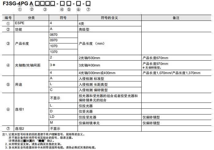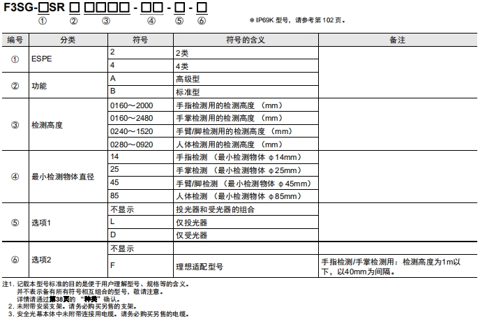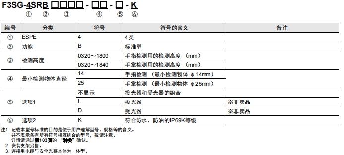 | 注:□可选择2或者4,2代表2类光幕型号,4代表4类光幕型号。 | |||