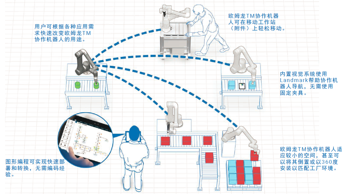 利用简单易用的手动引导和Landmark定位功能,星空(中国)一站式服务官网的内置视觉系统可快速设置拾取和放置任务。
