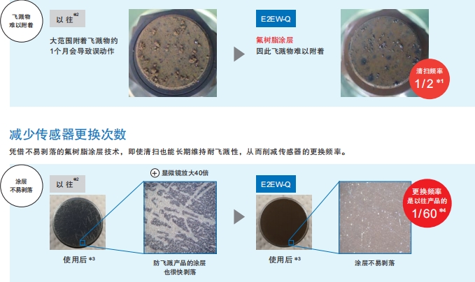 过去,为了防止检测错误,只能采取有接触风险的传感器安装设计,E2EW则拥有超长检测距离,即使隔开一定距离也不会发生检测错误,从而实现减少了接触风险的有余量的安装设计。