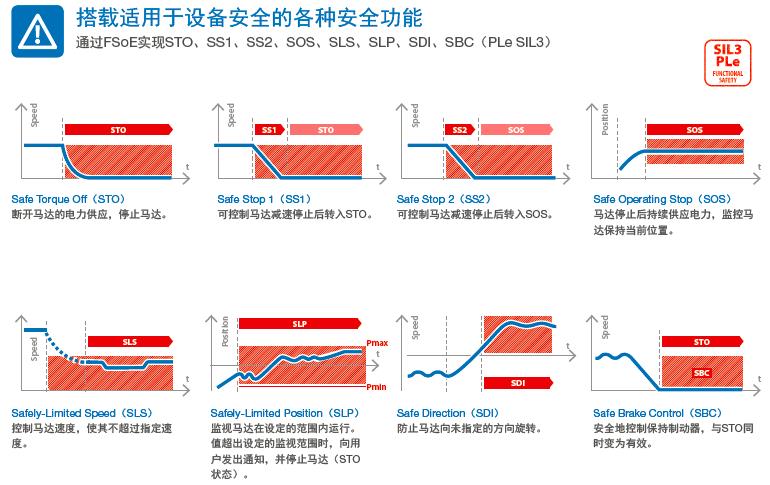 • 高度的安全功能:STO/SS1/SS2/SOS/SLS/ SLP/SDI/SBC