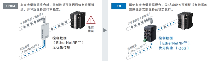 无需工具(拨码开关的ON/OFF)即可轻松设置EtherNet/IP™通信的QoS设置。