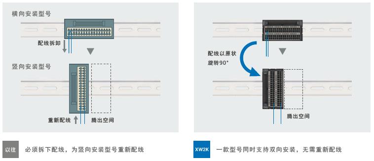 在控制柜侧面安装时,以往存在不便于进行配线作业的课题,但由于拆装无需使用工具,可以直接用手轻松配线。