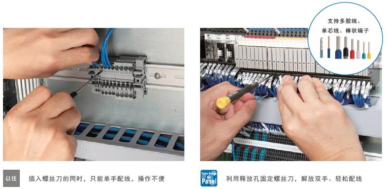 保证轻松插入配线的同时,通过弹簧结构确保可靠性的防松脱端子台。