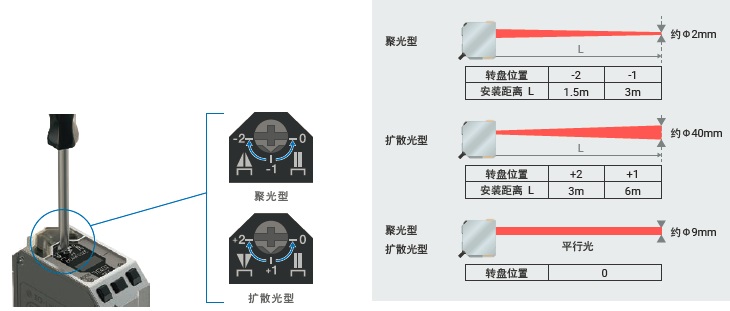 可将光点直径聚光至约φ2mm,使光轴穿过辊筒输送机间隙,稳定地检测工件。